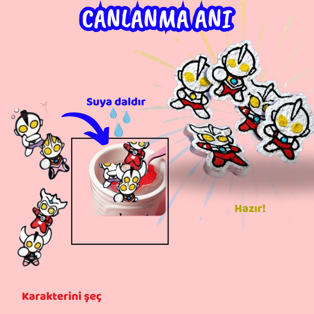 Çocuklar, set içindeki Ultraman karakterli köpük üzerine istedikleri renklerle boyama yapar. Ardından, hafifçe nemlendirilmiş bir fırça veya su püskürtücüsü ile köpüğe su uygularlar. Su ile temas eden köpükler, kabararak üç boyutlu ve canlı bir görünüme kavuşur. Bu sayede çocuklar hem yaratıcı hem de duyusal bir deneyim yaşar. Kullanımı güvenli ve kolaydır.